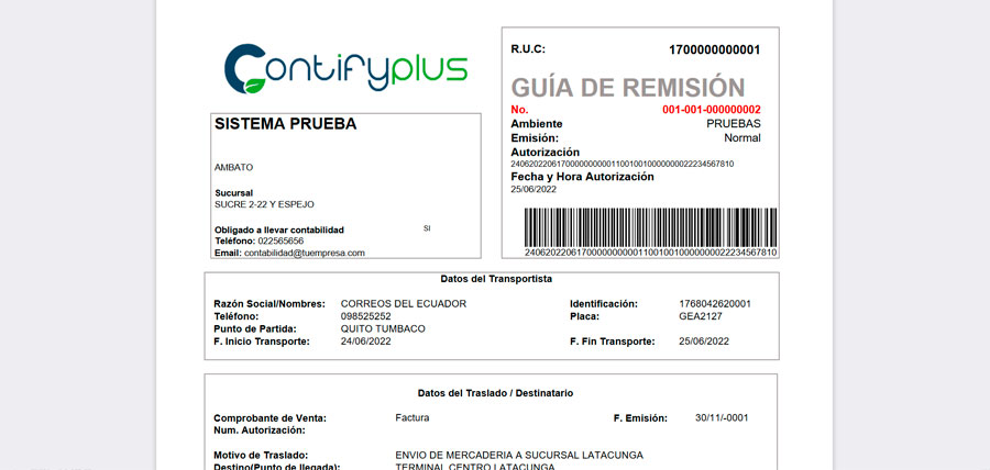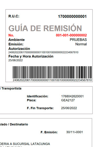 La guía de remisión electrónica en Ecuador sirve para sustentar el traslado de bienes desde un destino a otro, como un almacén, bodega o establecimiento y es de uso obligatorio exigido por el SRI.