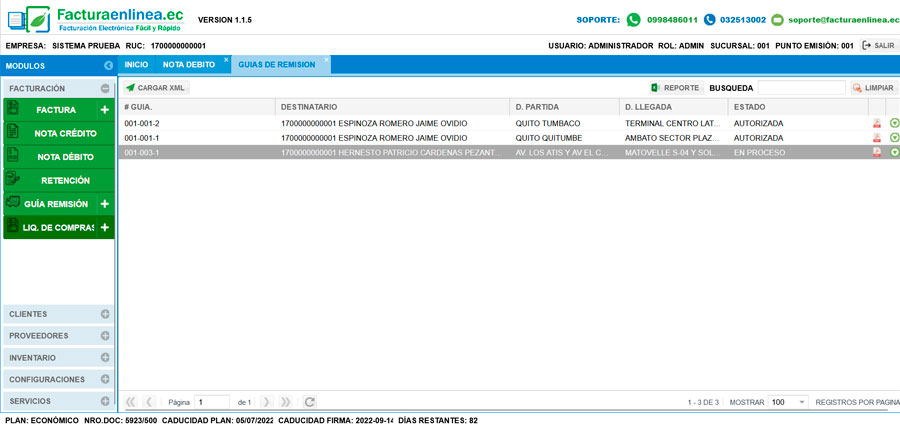 Con el sistema de Facturaenlinea.ec, emite tu guía de remisión electrónica en Ecuador fácil y rápido gracias a nuestra interfaz pensada en ti, olvídate de ese montón de molestos botones, ahora en 3 simples pasos tendrás lista tu guía de remisión electrónica. MIRA y compuébalo.